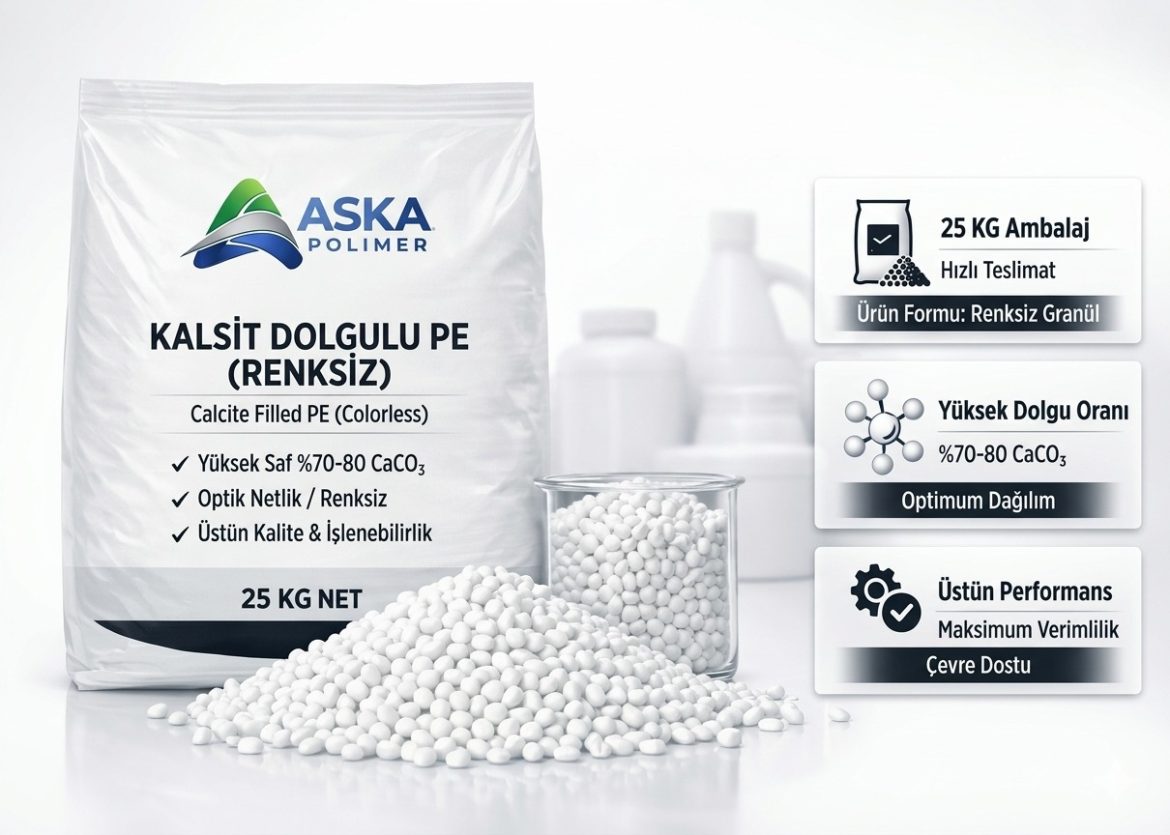 Özellik Açıklama Ürün Adı APC75G Dolgu Malzemesi Kalsiyum Karbonat (CaCO₃ – Kalsit) Dolgu Oranı %75 Taşıyıcı Reçine %25 Geri Dönüştürülmüş Polietilen (rPE) Fiziksel Form Granül Uyumlu PE Tipleri LDPE, LLDPE, MDPE, HDPE İşleme Yöntemleri Ekstrüzyon, Blow Molding, Enjeksiyon